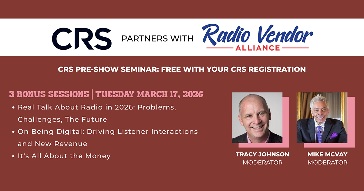 "Radio's future is bright, but it requires adaptation, innovation, and a commitment to serving listeners wherever and however they consume content," says McVay. "I'm honored to work with the Radio Vendor Alliance and to help facilitate meaningful conversations about where our industry is headed. The ‘CRS Pre-Show Seminar’ will be an opportunity to bring together forward-thinking professionals who are ready to embrace the radio station of the future."